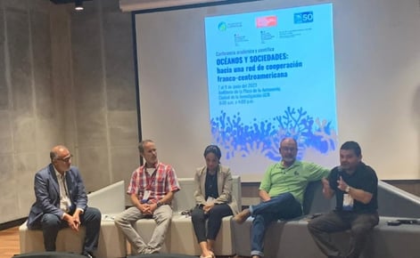 IOI Costa Rica organised, in collaboration with Universidad Nacional (UNA), Universidad de Costa Rica (UCR) and the Embassy of France in Costa Rica, a conference titled "Océanos y Sociedades" (Oceans and Societies), 7-10 June. Sergio Cambronero addressed participants via Zoom, from an Oceanographic vessel (R/V Falkor) in open Ocean during the expedition OctoMESS. His address was titled “Costa Rica 92% Ocean: Experiences from Oceanographic expeditions”. Cambronero spoke about the importance of studying the Ocean. The three main topics discussed during this conference were: marine-coastal contamination and impacts; Ocean governance and marine-coastal management; Ocean-climate variability and extreme events. Mauro Vargas, Director, IOI Costa Rica spoke about Ocean-climate variability and extreme events where the main problems affecting Ocean variability in Central American region were discussed. Scientists from several countries of Central America (Costa Rica, Panama, Salvador, Honduras, and Guatemala) participated and were involved during the presentations and discussion sessions.