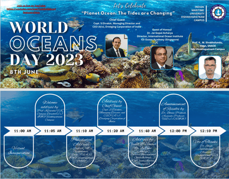 Dr Jai Acharya, Focal Point IOI Singapore celebrated WOD 2023 as a core event with Indian Maritime University (IMU) at its Vizag Campus with a virtual and physical presence of 400+ viewers/participants during which FP Singapore, as a representative of IOI, delivered a speech as guest of honour during the event. Dr Acharya elaborated on issues regarding biodiversity, over exploitation of the ocean, Ocean pollution, deep sea mining, replanting of mangroves and much more. On the eve of WOD, various competitions were organized for students.