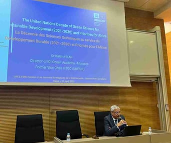 IOI Ocean Academy Director (Morocco) Karim Hilmi was invited to speak at the Conference of the UN Decade of Ocean Science for Sustainable Development (2021-2030) and Priorities for Africa in Rabat, Morocco, on 27 April. This was organised by the International University of Rabat (UIR) & FMES (The Mediterranean Foundation for Strategic Studies). Representing the IOI Ocean Academy for Morocco, besides the UN Ocean Decade, he spoke about the modules and activities successfully held last year by IOI Ocean Academy Morocco and promoted the modules to be delivered in October and November this year.