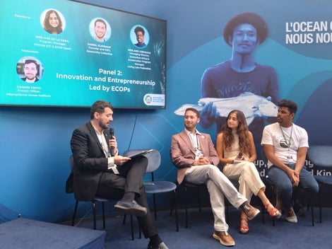 The session was structured around two dynamic fireside chats. The first panel, moderated by Evgeniia Kostianaia (Global Coordinator, ECOP Programme), brought together experts in governance, diplomacy, and sustainable trade. Antonella Vassallo participated as a speaker, sharing insights on the role of capacity development and ocean literacy in supporting ECOPs to navigate and shape ocean governance frameworks. She was joined by Ludovic Arnaud, Associate Economic Affairs Officer at UNCTAD, who highlighted the importance of inclusive and sustainable trade systems in unlocking the potential of the Blue Economy, particularly through support to ECOP-led entrepreneurship and innovation. François Bailet, Senior Legal Officer and Coordinator of the Capacity-Building and Trust Funds unit at UNDOALOS, emphasised the need for legal and institutional frameworks that not only engage developing countries but also create meaningful space for early career professionals within multilateral ocean governance processes. Each speaker offered complementary perspectives on international legal frameworks, trade policy, and capacity development, while underscoring the importance of intergenerational inclusion and long-term investment in ECOP empowerment.