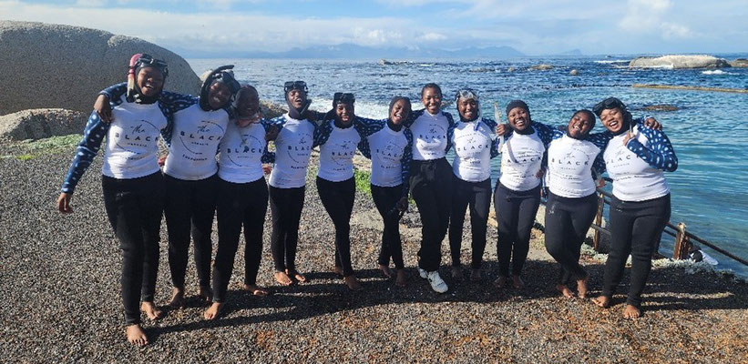 Before entering the water, some learners gathered to say a quiet prayer, acknowledging the sea as both powerful and unknown. For many, the ocean has long been viewed as a scary and unsafe world, shaped by fear, myth, or simply lack of access. This moment of reflection was a powerful act of courage, stepping into a space perceived as threatening, now hopefully reimagined as a place of beauty, life, and belonging.