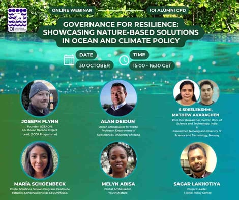 As part of its mission to offer continuous professional development opportunities to its global community of IOI Alumni and Early Career Ocean Professionals (ECOPs), the International Ocean Institute (IOI) hosted its third Alumni CPD Webinar of 2025, titled “Governance for Resilience: Showcasing Nature-Based Solutions in Ocean and Climate Policy.”