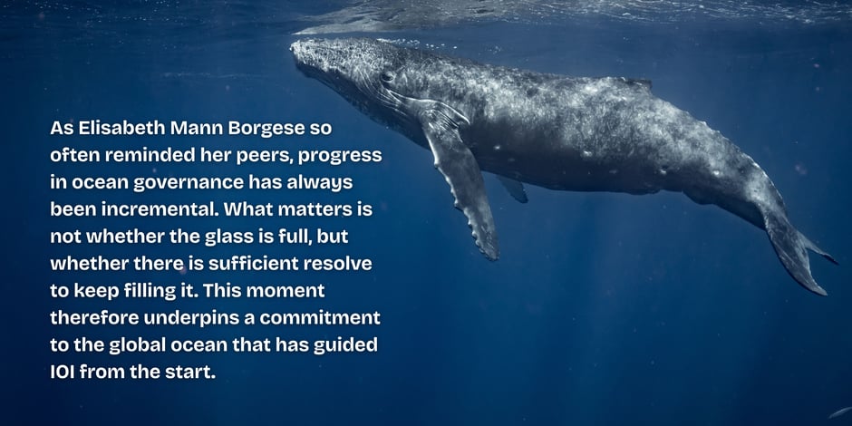 Long before the BBNJ Treaty took shape, this vision was articulated by IOI’s founder, Elisabeth Mann Borgese. At a time when the ocean risked being marginalised within global development debates, she championed the idea of the ocean as a global commons: one requiring cooperative, equitable, and knowledge-based governance beyond national boundaries. Her insistence that informed dialogue, institutional inclusivity, and capacity development were prerequisites for effective governance helped shape the international processes that would later give rise to the BBNJ framework.