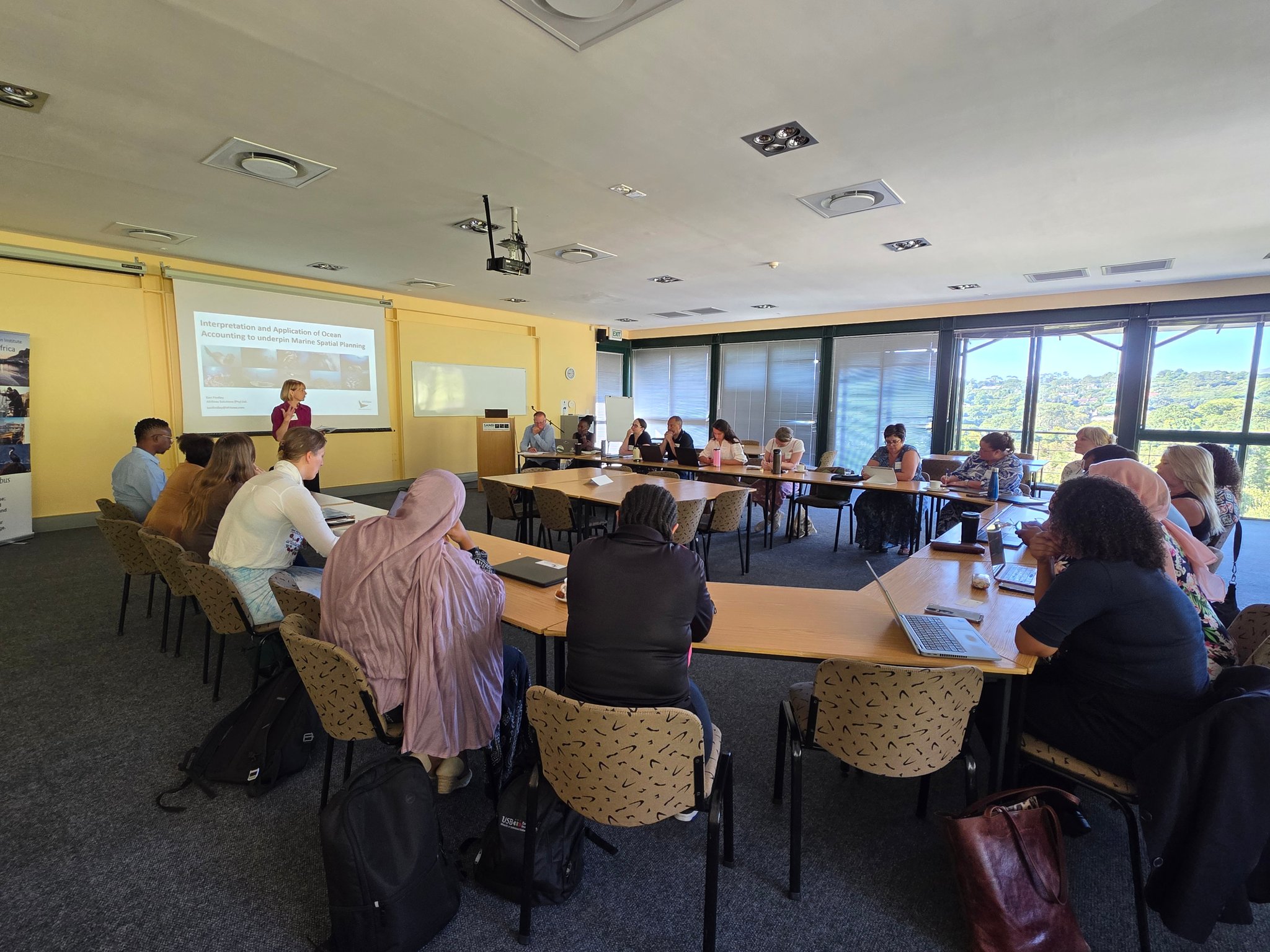 Located at the SANBI Research Centre in Kirstenbosch Gardens, the workshop brought together diverse perspectives of 25 participants from various sectors. At the outset, participants were introduced to the principles and application of ocean accounting, with a focus on how it can support valuations for trade-off analysis across environmental, economic and social domains, and transparent, evidence-based decisions in Marine Spatial Planning.