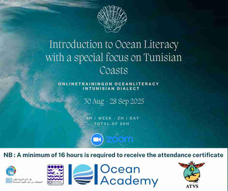 نفسية. لكن ليوم بحورتنا تواجه برشا تحديات ، بدءًا من التلوّث ،الصيد المُفرط إلى الحوكمة. هذا الكل يهدد التوازن البيئي البحري. في الدَّورَة هذي ،باش نتعرفو على عالم الثقافة البحرية ونَسْتَكْشِفُ المسائل المُتَعَدِّدَة التَّي تُؤَثِّر على بحارنا اليَوم، مع تَرَكِيزٍ خَاصٍّ عَلى السواحل التونسيَّة ودورنا المهم في المحافظة عليهم